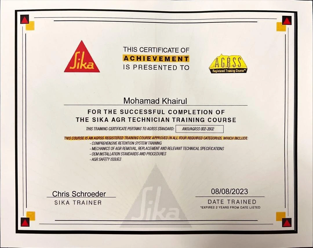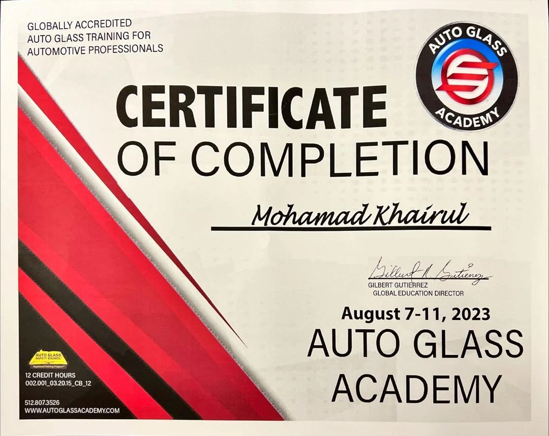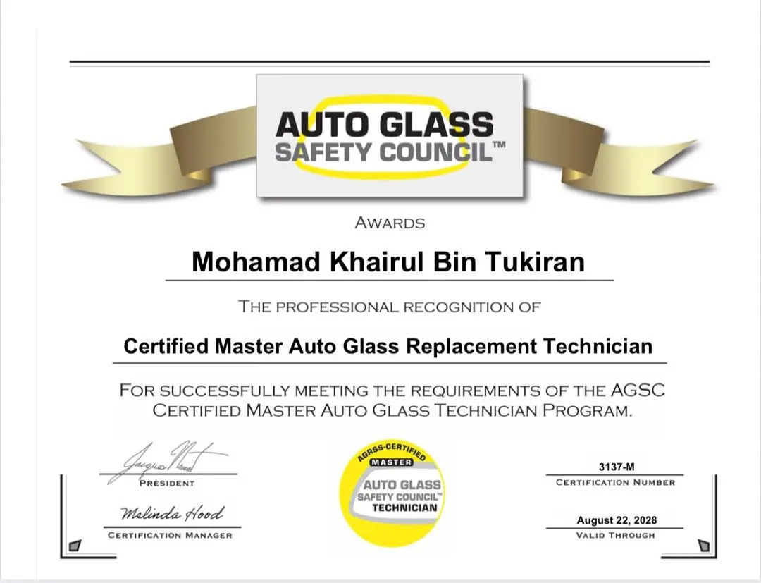 Barakah Auto Glass merupakan bengkel pertama di Malaysia yang menerima pentauliahan dari Auto Glass Safety Council sebagai pusat penukaran cermin kenderaan yang memenuhi standard ditetapkan oleh ANSI/AGSC/AGRSS.